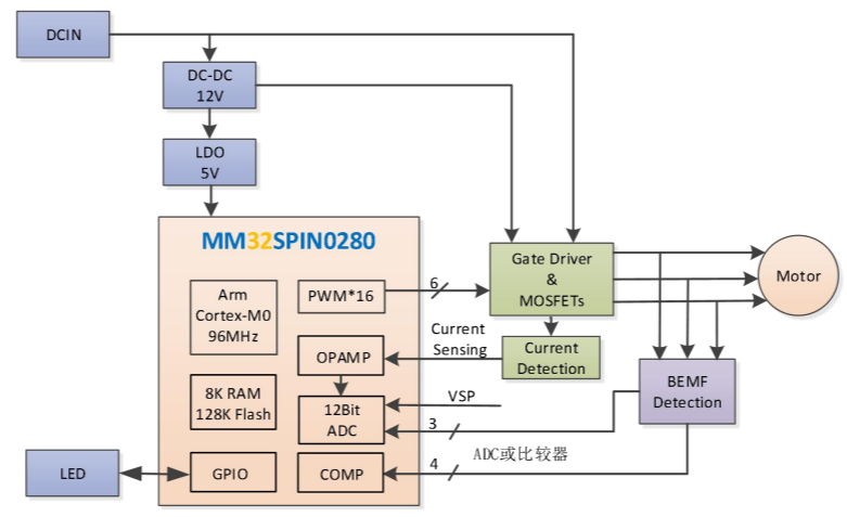 MM32SPIN0280無(wú)感方波硬件框圖