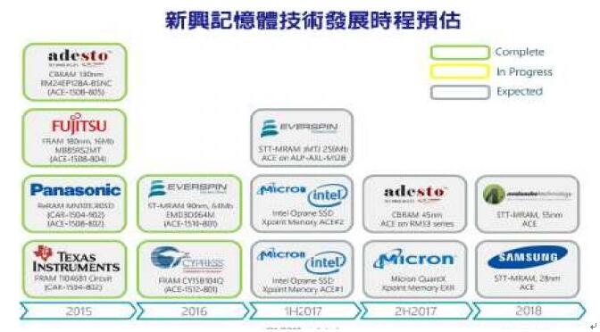 根據(jù)研究機(jī)構(gòu)Tech Insights估計,包含F(xiàn)RAM、STT-MRAM、3D Xpoint 、CBRAM等新世代內(nèi)存,都已陸續(xù)進(jìn)入小量生產(chǎn)階段。 不過,這些新興內(nèi)存技術(shù)中,除了少數(shù)存儲芯片例外,要發(fā)展到能跟NAND Flash、DRAM不相上下的程度,恐怕還需要很長的一段時間,因為DRAM與NAND Flash已具備極為龐大的經(jīng)濟(jì)規(guī)模,即便新興內(nèi)存技術(shù)在性能方面明顯優(yōu)于現(xiàn)有內(nèi)存,在供貨穩(wěn)定度、成本方面也未必能與現(xiàn)有內(nèi)存技術(shù)相抗衡。