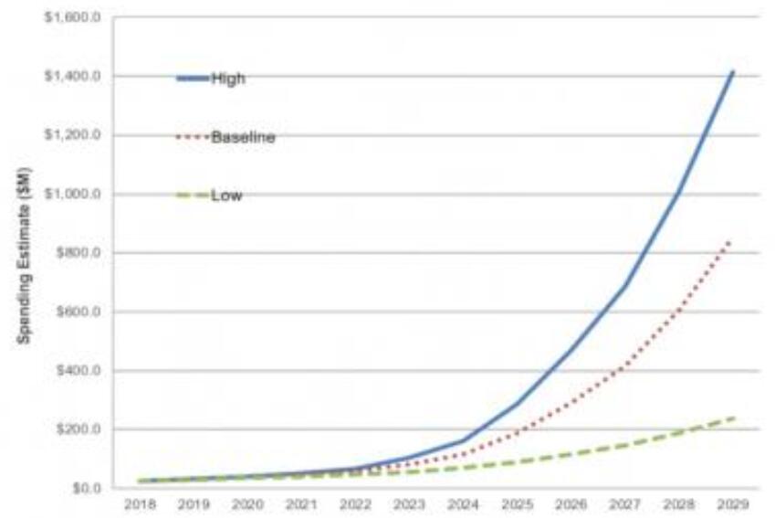 對(duì)MRAM存儲(chǔ)器的巨大需求將刺激設(shè)備支出的穩(wěn)步增長(zhǎng)。預(yù)計(jì)MRAM設(shè)備市場(chǎng)將從2018年的2600萬(wàn)美元增長(zhǎng)到2029年的854美元-增長(zhǎng)33倍。
